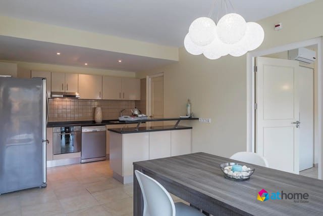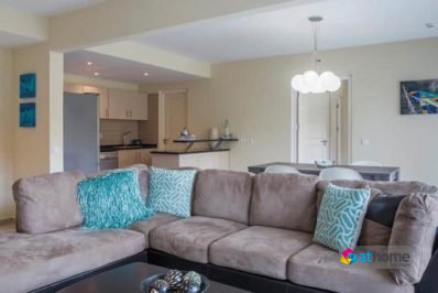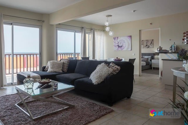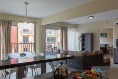The apartment has a living area with two bedrooms and two and a half bathrooms and comes fully furnished.