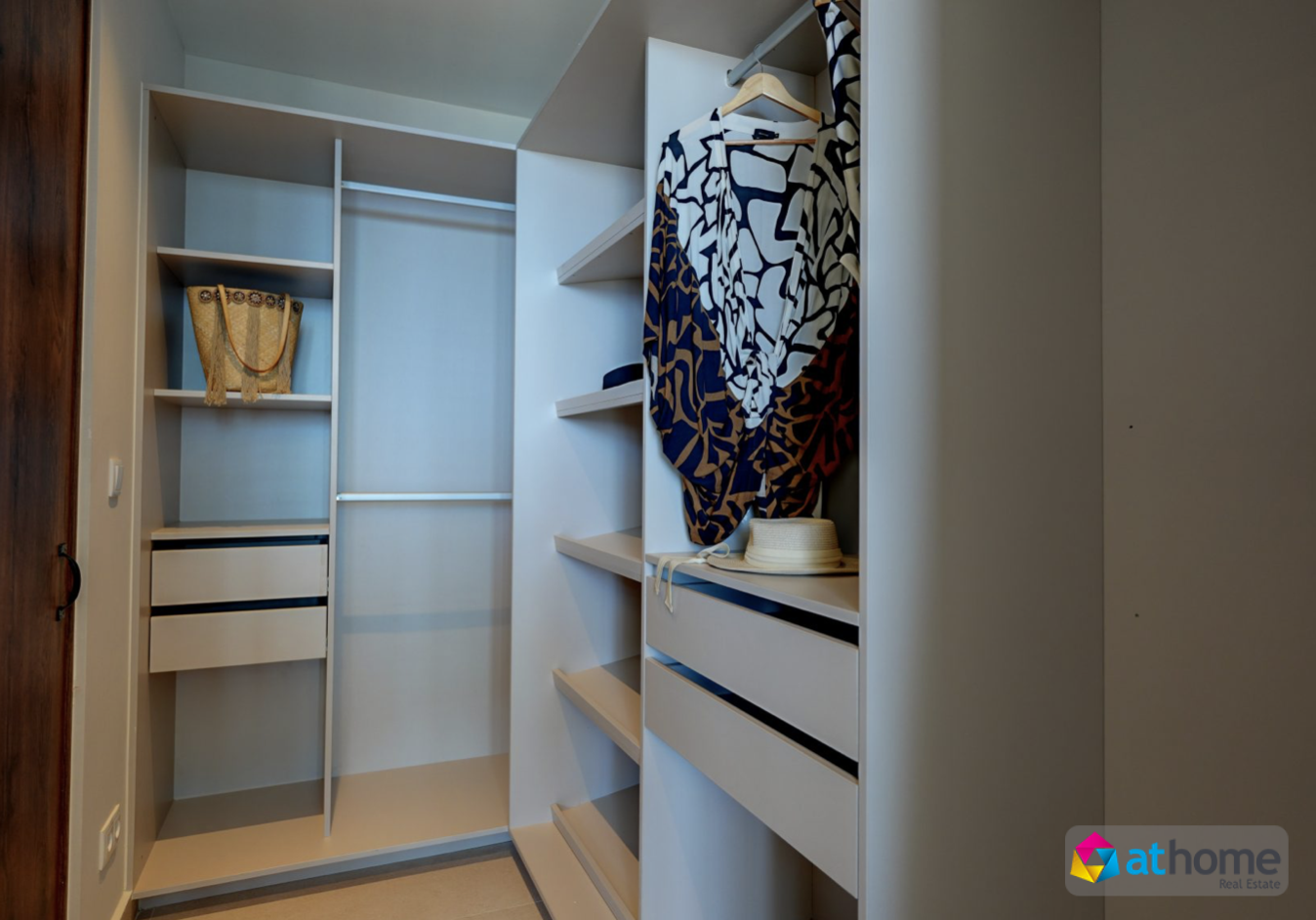 The apartment is located directly on Marichi Beach, within walking distance of restaurants and cultural attractions. The complex features a large swimming pool with sun terrace, a lobby with reception, commercial units, a beach bar and unlimited beach access with towels and palapas.