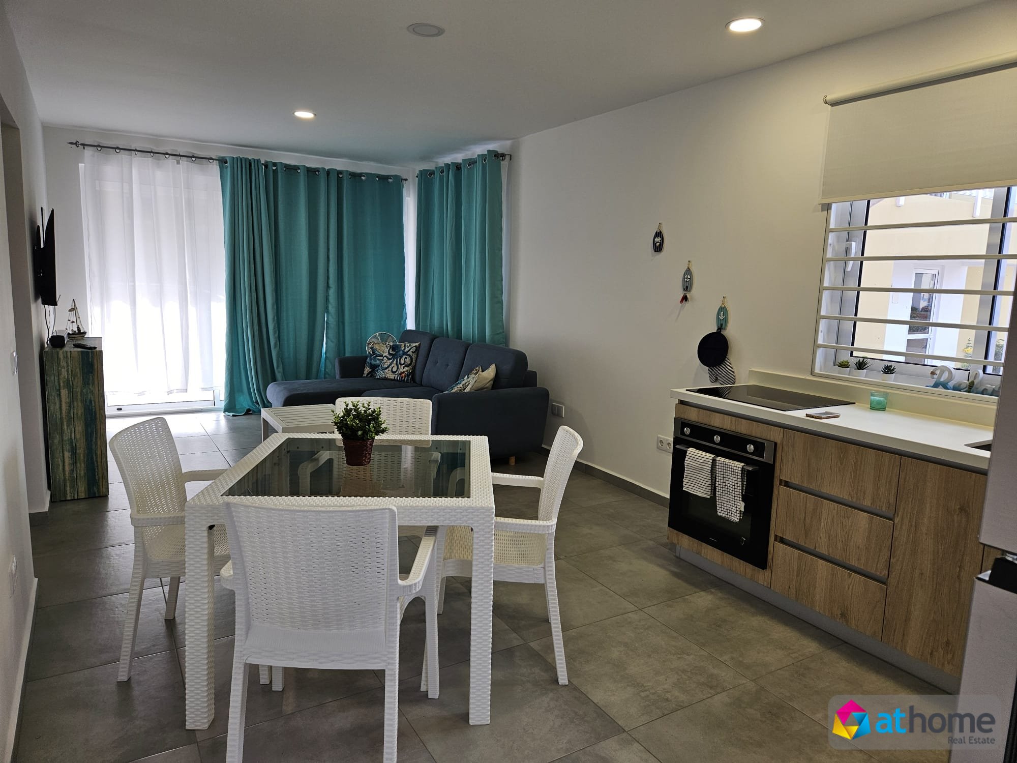 Het appartement is volledig gemeubileerd en beschikt over 2 ruime slaapkamers en 2 moderne badkamers. De ruime open woonkamer loopt naadloos over in de moderne keuken. De keuken is volledig uitgerust met elektrische kookplaat, oven en koelkast. Vanuit de woonkamer is er toegang tot het terras aan de voorzijde en is er aan de achterzijde een buitenruimte met veel privacy.