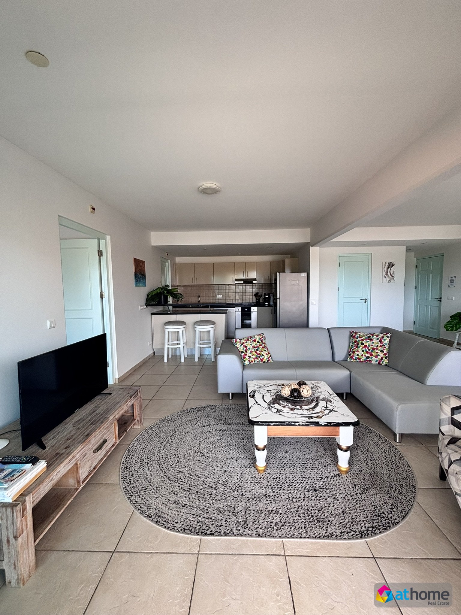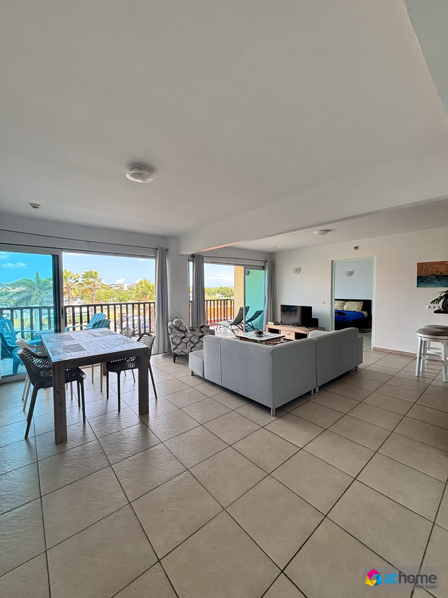 Bij binnenkomst kom je in de lichte, ruime woonkamer (36 m²) met gastentoilet en toegang tot het balkon van 15 m², waar je kunt genieten van de Caribische bries en een vrij uitzicht.