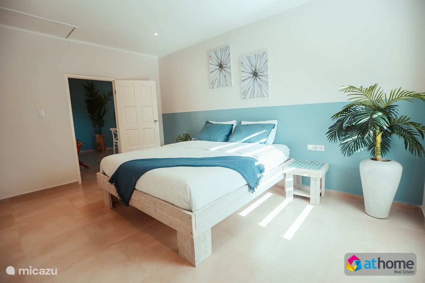 De master bedroom is ruim van opzet en heeft een en-suite badkamer en een Walk-in closet. Deze badkamer is ingericht met een douche, wastafel en een toilet. De master bedroom heeft een directe toegang tot de tuin en het zwembad.