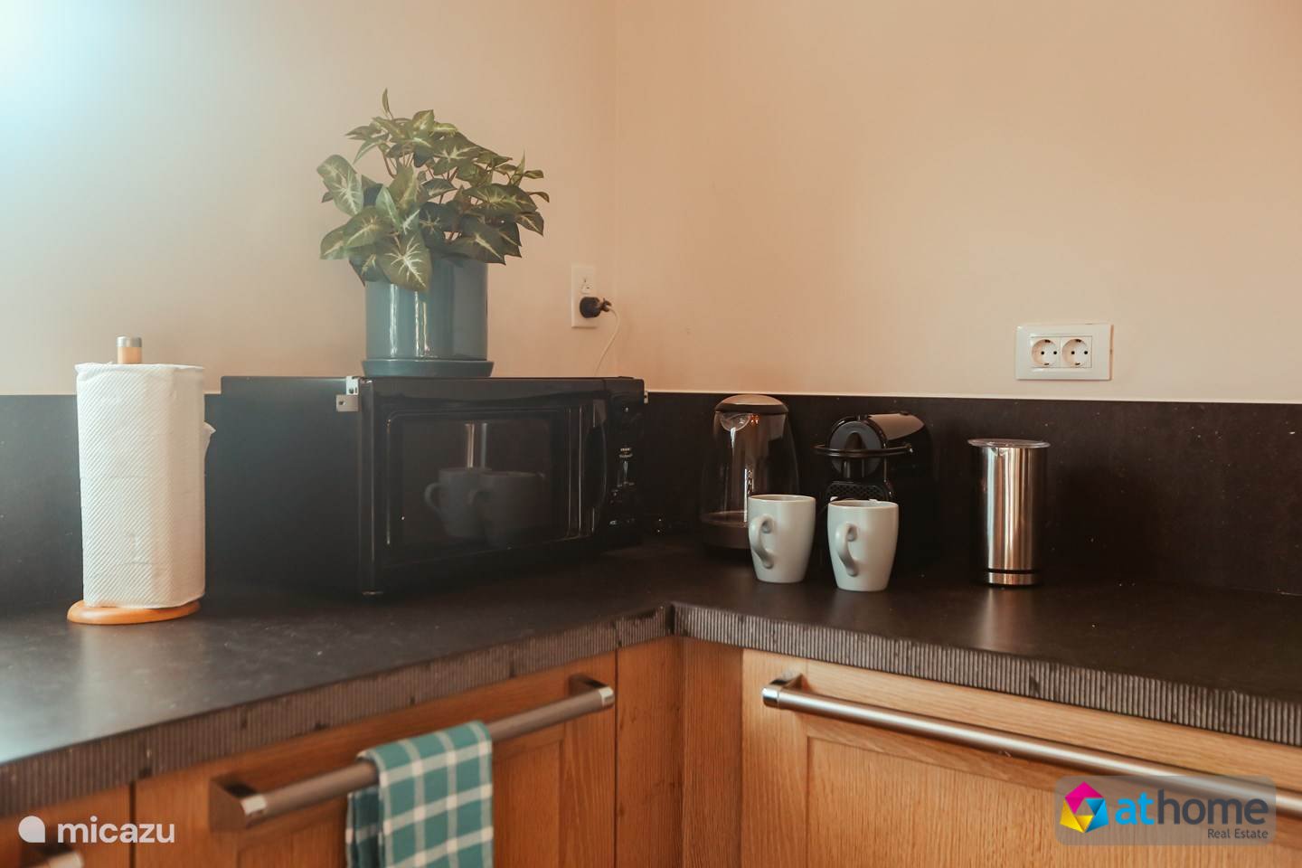 De keuken is luxe afgewerkt en van alle gemakken voorzien. De keuken is voorzien van een spoelbak, 4 pits fornuis, een oven en magnetron. De keuken is ruim en eveneens verbonden met de overdekte porch.