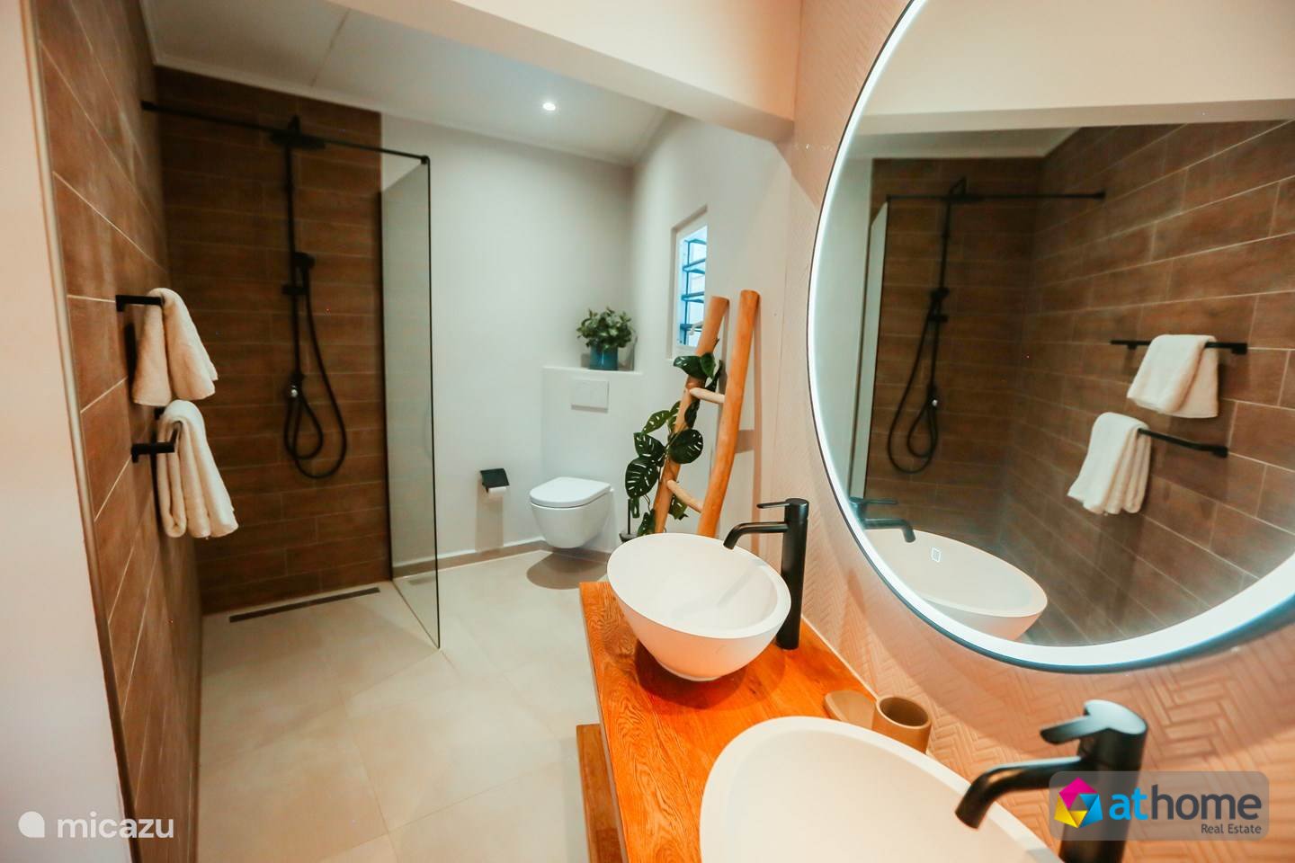 De overige 2 slaapkamers beschikken beide over een en-suite badkamer. Deze badkamers zijn ingericht met een douche, dubbele wastafel en een douche.