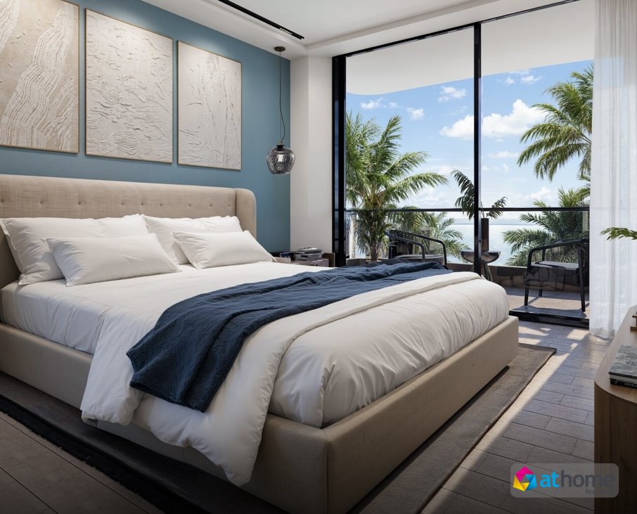 Dit 3-slaapkamer, 3,5-badkamer appartement van 165 m² is ontworpen met focus op licht, ruimte en verfijnd wonen. Grote ramen bieden panoramisch uitzicht op de oceaan, terwijl iedere slaapkamer beschikt over een eigen en-suite badkamer en ruime walk-in closets.