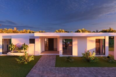 De kavel bestaat uit een verdiepingswoning met een woonoppervlak van ca 210 m2. De woonkamer is omgeven door openslaande deuren en ramen die toegang geven tot natuurlijk licht en de overdekte veranda aan de achterkant. In de overdekte porch is er een verkoelende bries aanwezig.